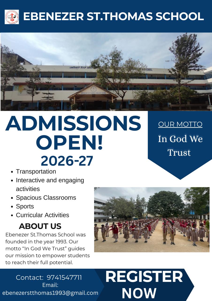 Welcome to Ebenezer St.Thomas School (ESTS), a vibrant and inclusive community founded in 1993, where our motto "In God We Trust" guides our mission to empower students to reach their full potential. With a rich history of academic excellence, innovation, and service, we believe in the transformative power of education to impact lives and communities. Our experienced faculty and staff provide a supportive and stimulating environment, fostering creativity, teamwork, and leadership through a wide range of extracurricular activities. At ESTS, we value discipline, dedication, and determination, helping students explore, discover, and grow. We invite you to visit our campus and discover why ESTS is the perfect place for your child to thrive.